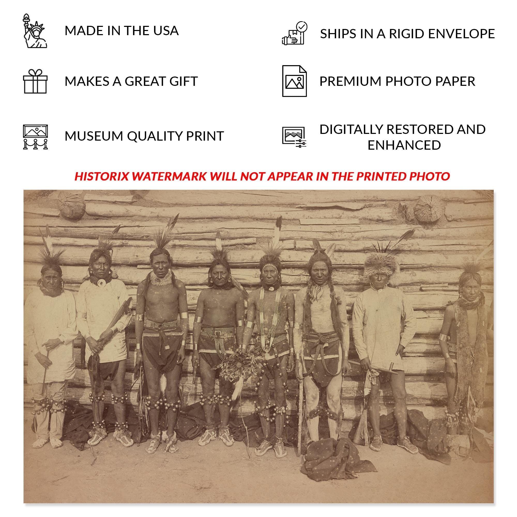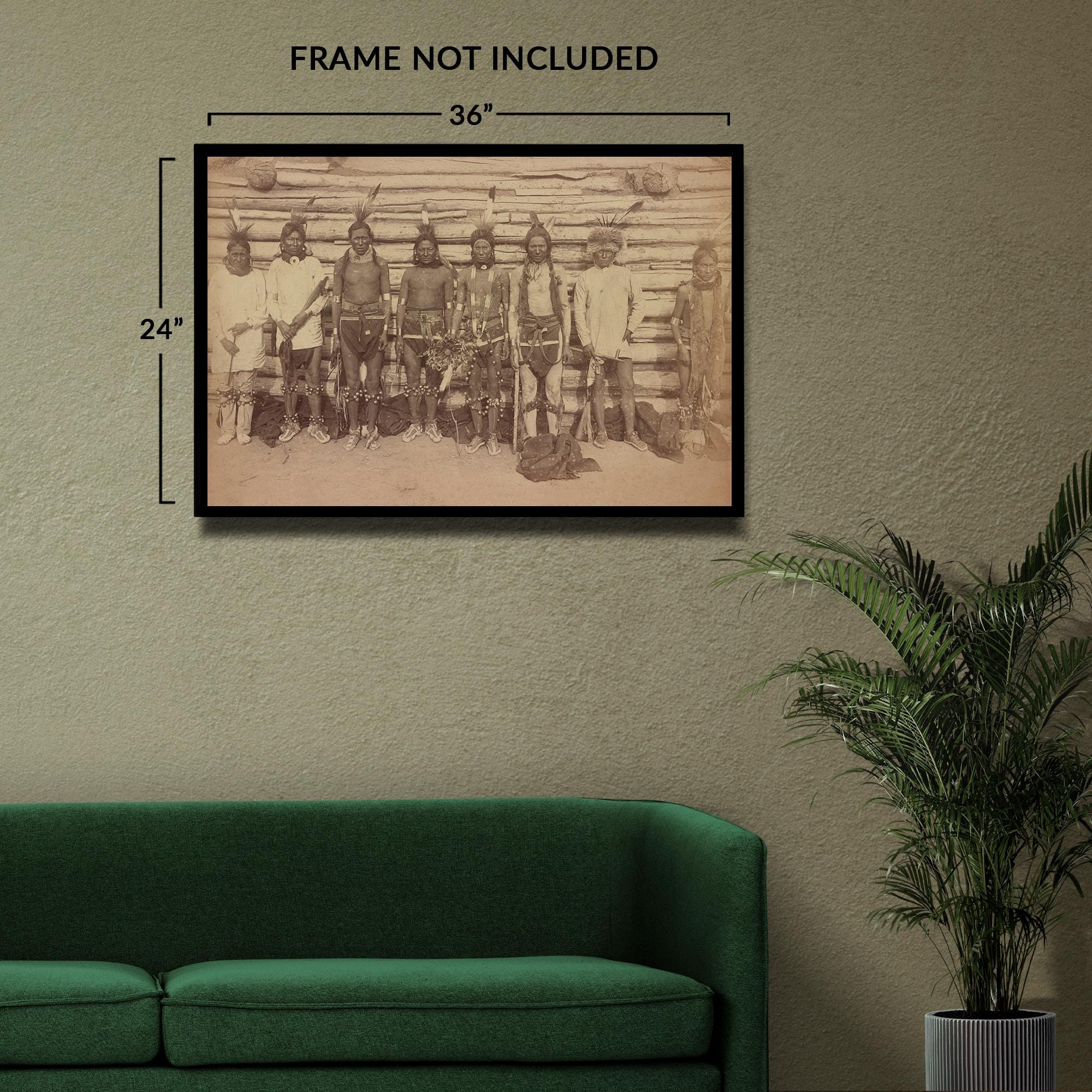 • VINTAGE PRINT REPRODUCTION: Historic reproduction of 1880 Sioux War Party Dakota Ceremonial Dancers Photo. Printed on archival-grade paper that resists fading and discoloration for over 100 years. Perfect for home, office, or gallery display.