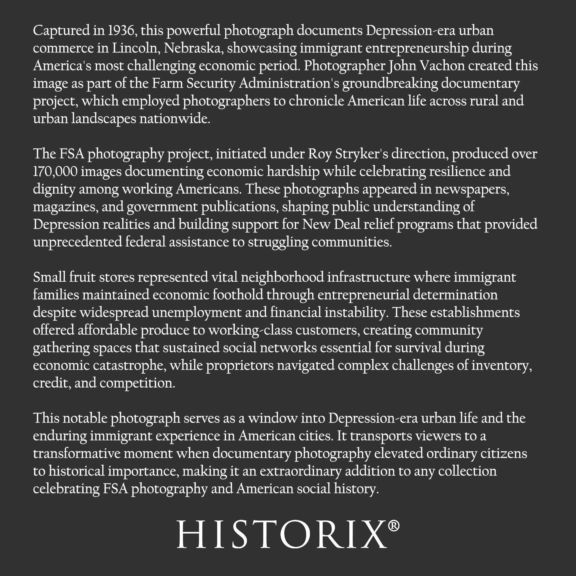 - VINTAGE PRINT REPRODUCTION: Historic reproduction of 1936 Lincoln Nebraska Fruit Store FSA Photo. Printed on archival-grade paper that resists fading and discoloration for over 100 years. Perfect for home, office, or gallery display.