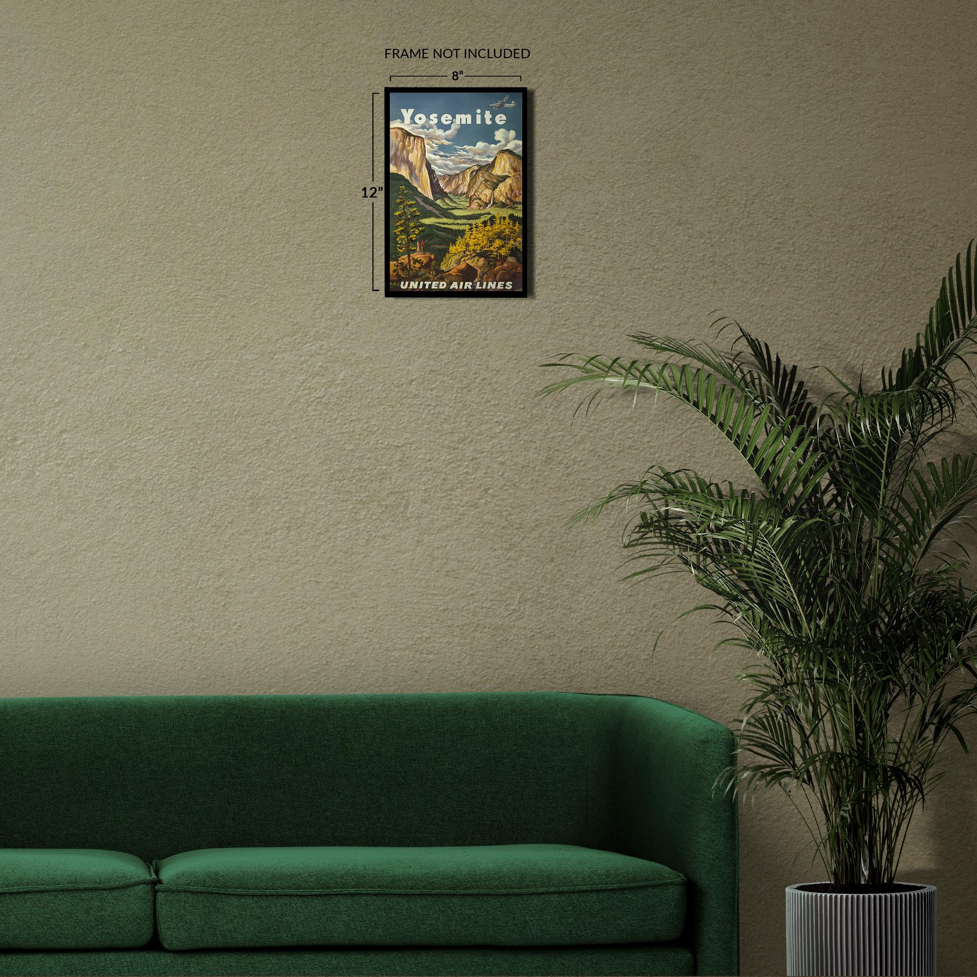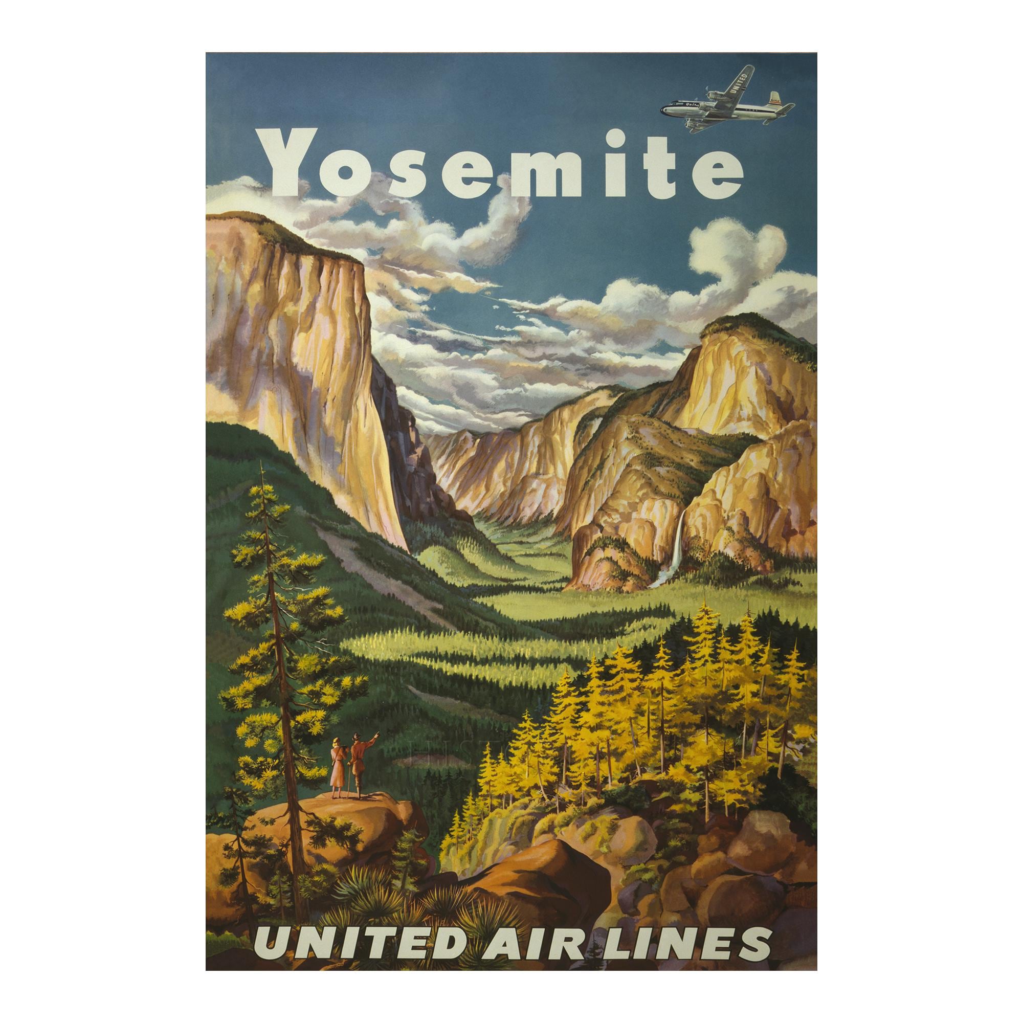 - VINTAGE PRINT REPRODUCTION: Historic reproduction of 1945 Yosemite National Park United Airlines Travel Poster. Printed on archival-grade paper that resists fading and discoloration for over 100 years. Perfect for home, office, or gallery display.