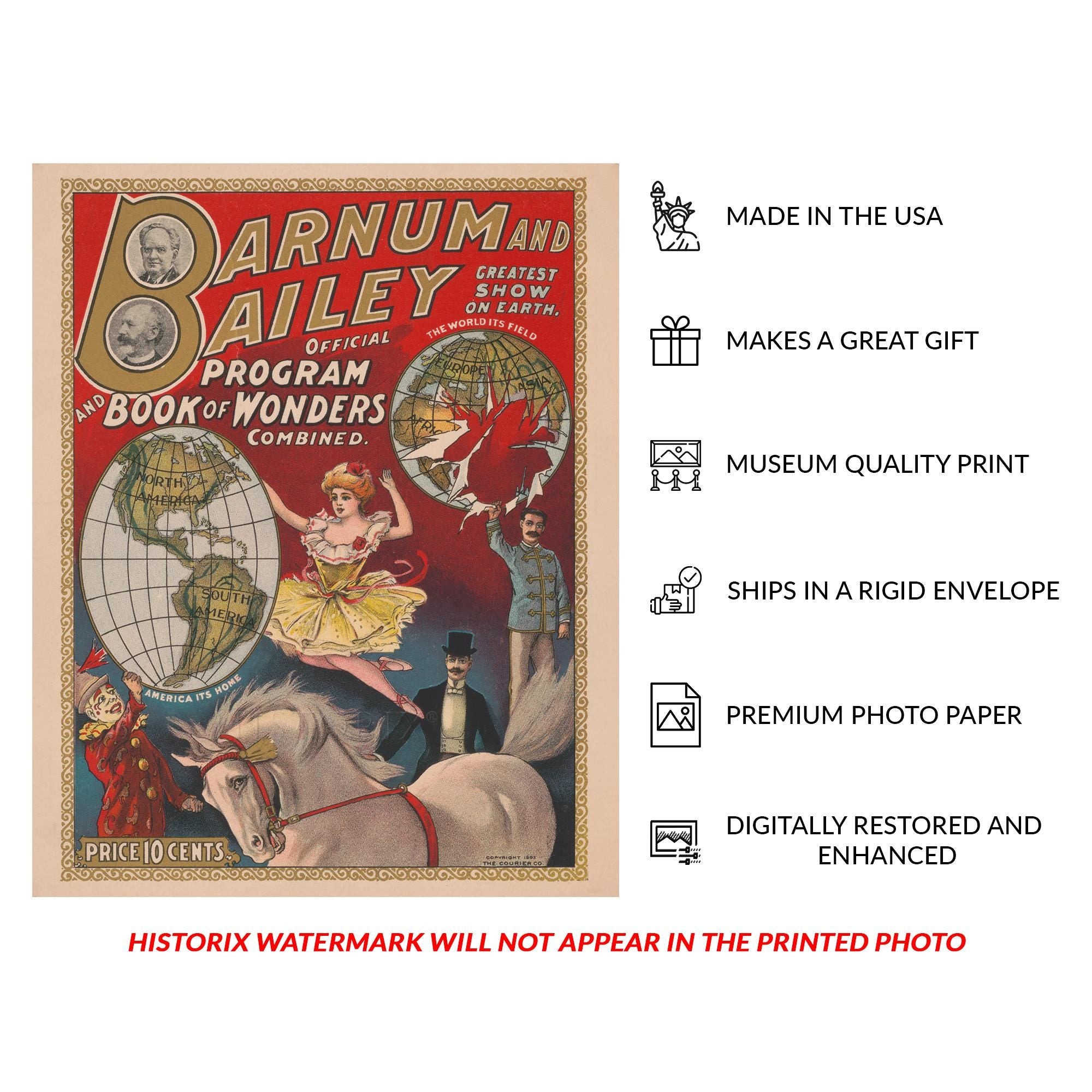 Digitally Restored and Enhanced 1903 Barnum & Bailey Circus Poster - Official Program Book of Wonders Cover - Circus Ephemera - Archival Print